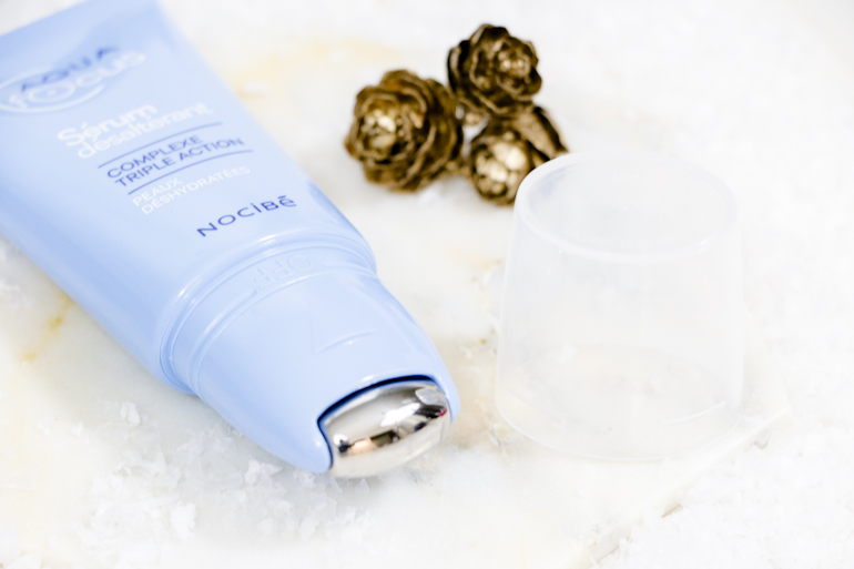 J’ai eu un véritable coup de coeur pour le packaging de ce sérum désaltérant ! Je ne crois pas avoir vu un système de fermeture aussi élaboré et encore moins pour un produit soin à moins de 20€. Le petit roll on dispose d’un sytème on et off qui permet de garder le produit bien contenu à l’intérieur. Attention cependant à ne pas oublier de le remettre en position off après usage car son packaging très flex risque de laisser échapper beaucoup trop de produit dans le bouchon.