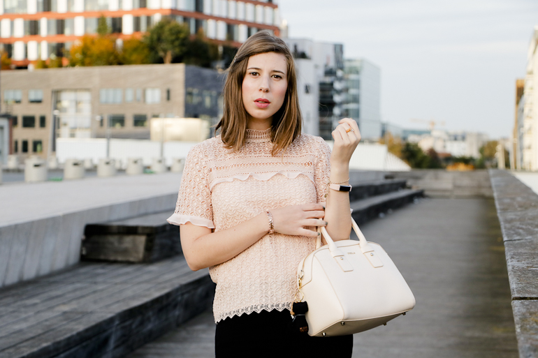 Je l’avoue, ce shooting date d’avant la grande vague de froid ! J’ai flashé sur ce top rose poudré en dentelle de chez Zara, qui, porté en toute simplicité, fait quand même son petit effet. Je ne suis pourtant pas fan des pantalons et encore moins des jeans sur moi car ça détruit un peu tout mon univers de poupée, mais pour le coup l’alliance jeans noir et top en dentelle à quand même bien fonctionné. Je pense l’emmener pour les fêtes, et ne parlons pas des petites babies avec leur talon pailleté : c’est bientôt Noël !!!!! 😀