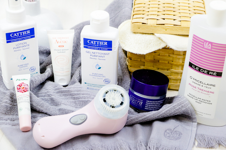 Une fois le démaquillage opéré, je passe un petit coton de lotion pour « rincer » davantage et pour « traiter ». La lotion purifiante de chez Cattier est celle que j’utilise pour les périodes de stress car elle lutte gentiment contre les petits boutons, sans dessécher. J’aime aussi, les jours où j’ai posé du mascara, appliqué un coton d’eau de bleuet, mais ça vous le savez c’est un basique quoi qu’il arrive !