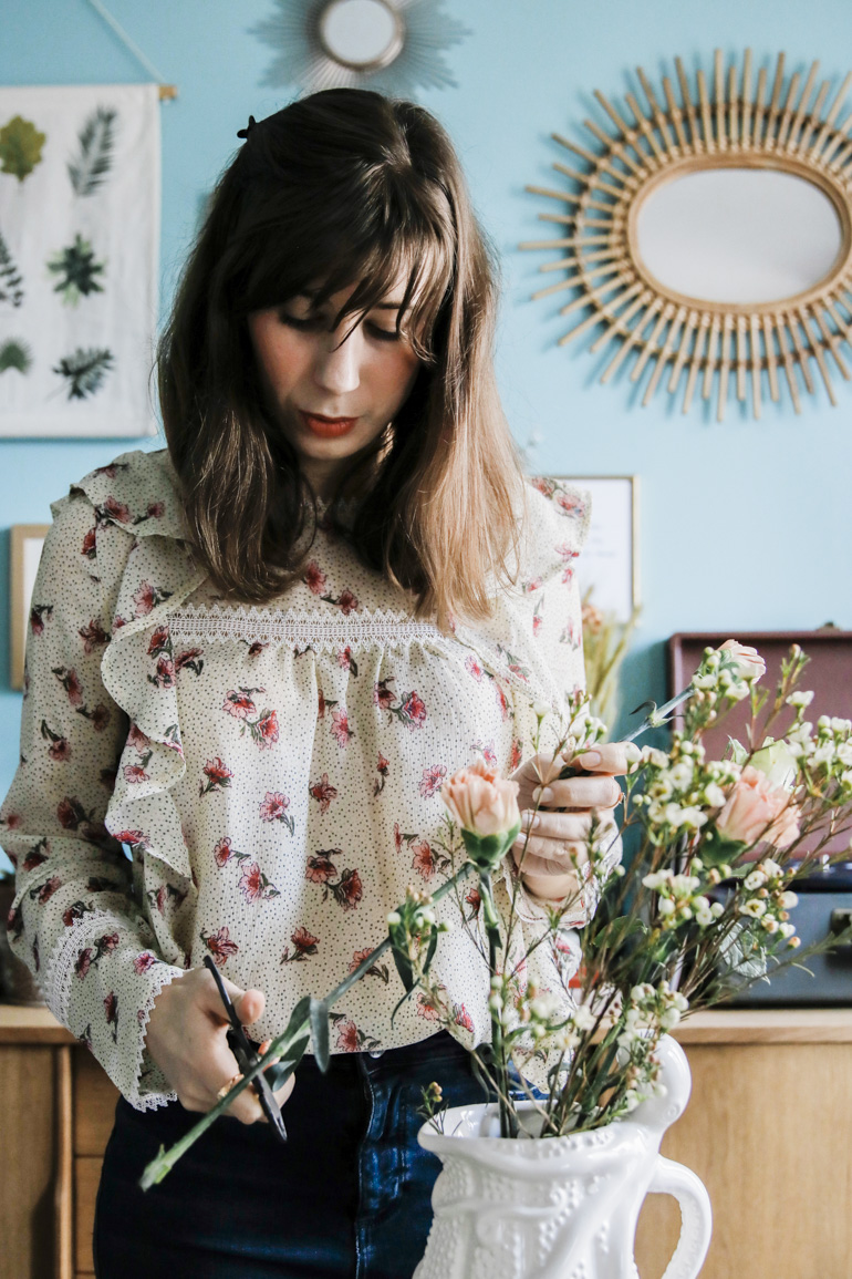 Blouse : Grace & Mila (old) – Arrosoir : Ikea – Vase : Zara Home (old)